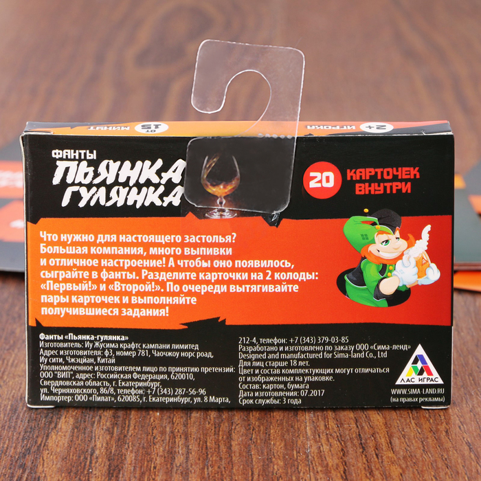 Купить игра для компании "фанты пьянка - гулянка" 20 карт от 80 руб. с доставкой до пункта выдачи в Гусеве. Интернет магазин ДекаМаркет. Оплата при получении.